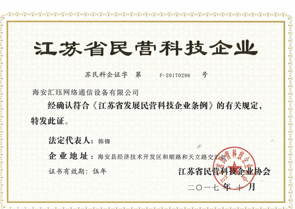 Haian Huijue Network Communication Equipment Co., Ltd., located in Haian City, Nantong, Jiangsu Province, is a subsidiary of Shanghai HuiJue Technologies Group Co.,ltd. Founded in 2002 with a registered capital of 107.78 million RMB, the company specializes in providing transmission network software, hardware and technical services for domestic operators, and is a high-tech enterprise integrating R&D, production and sales.